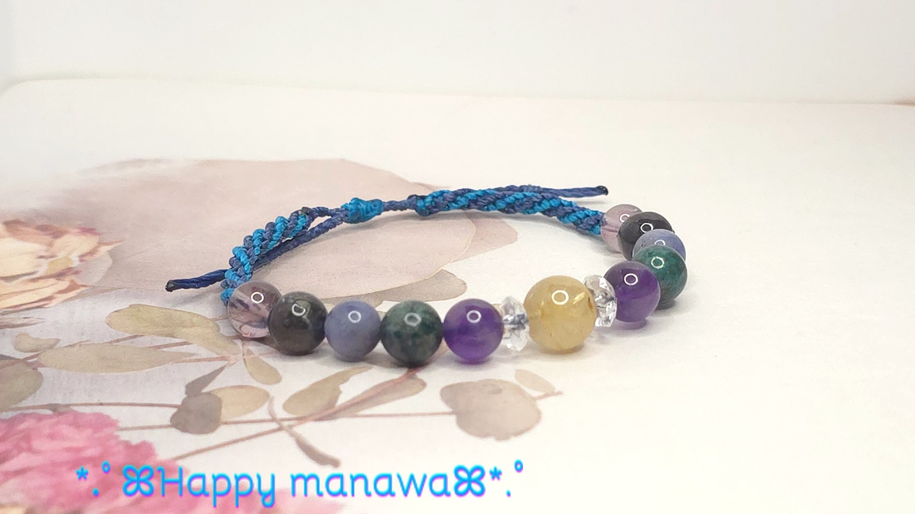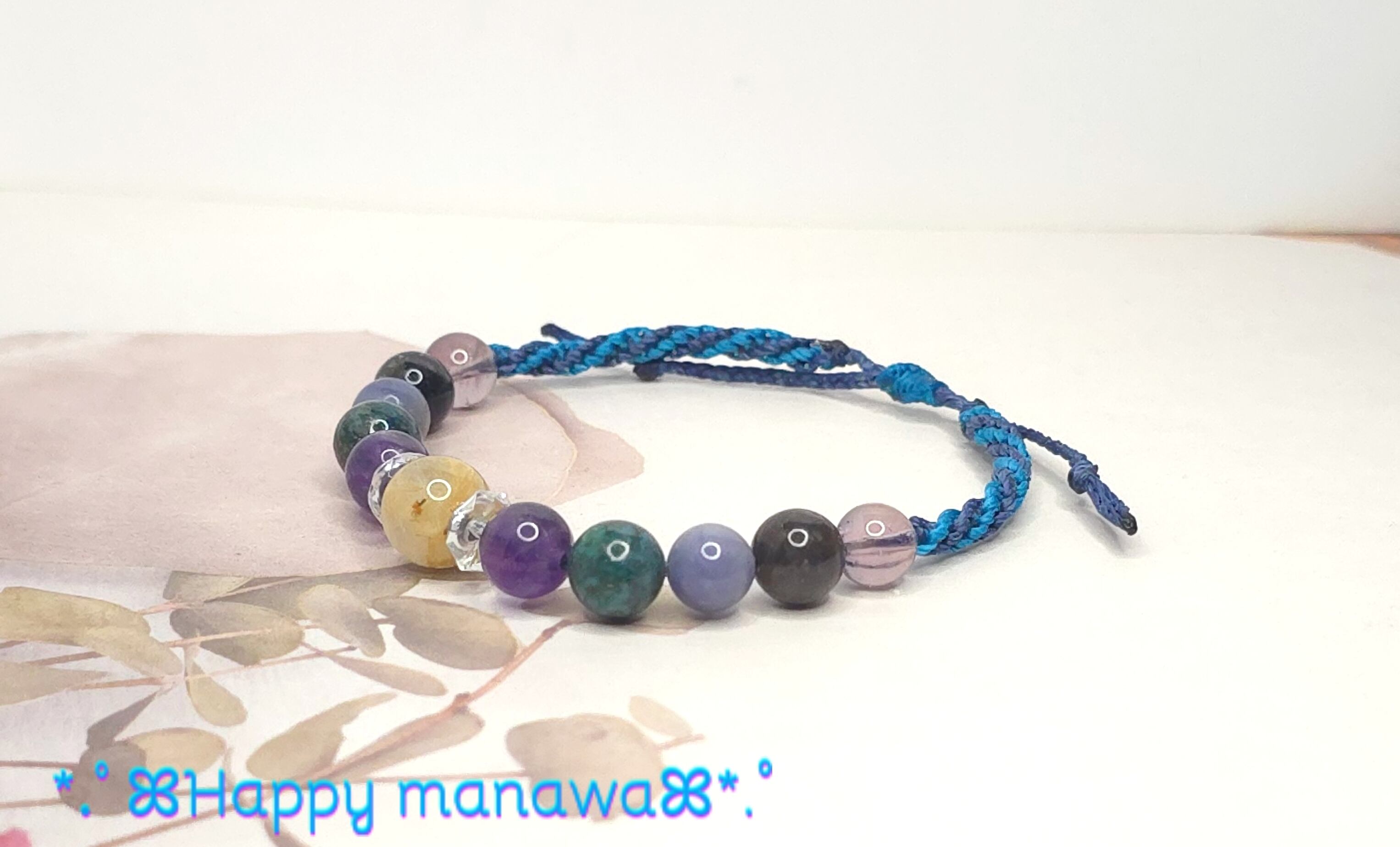 ✽ ブレスレットやアンクレットはマクラメコード(蝋引き紐)を編んで作っています。