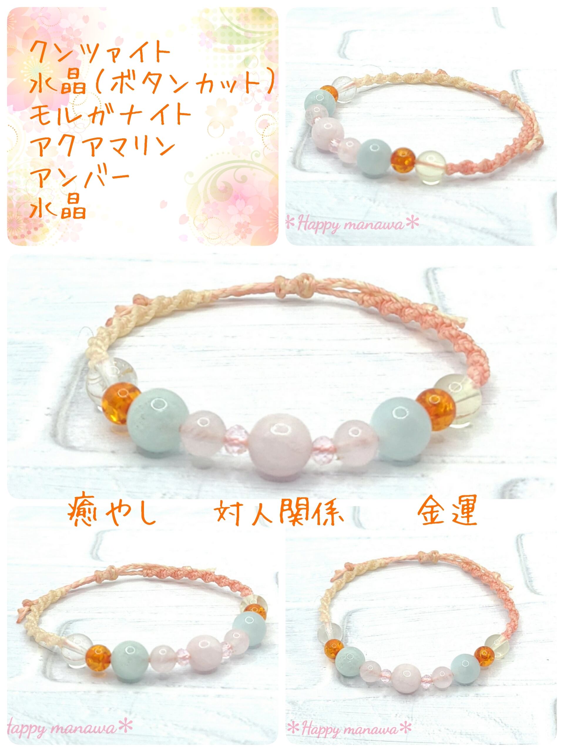 レディース❊マクラメ編みお守りブレスレット❊癒やし&対人関係・金運