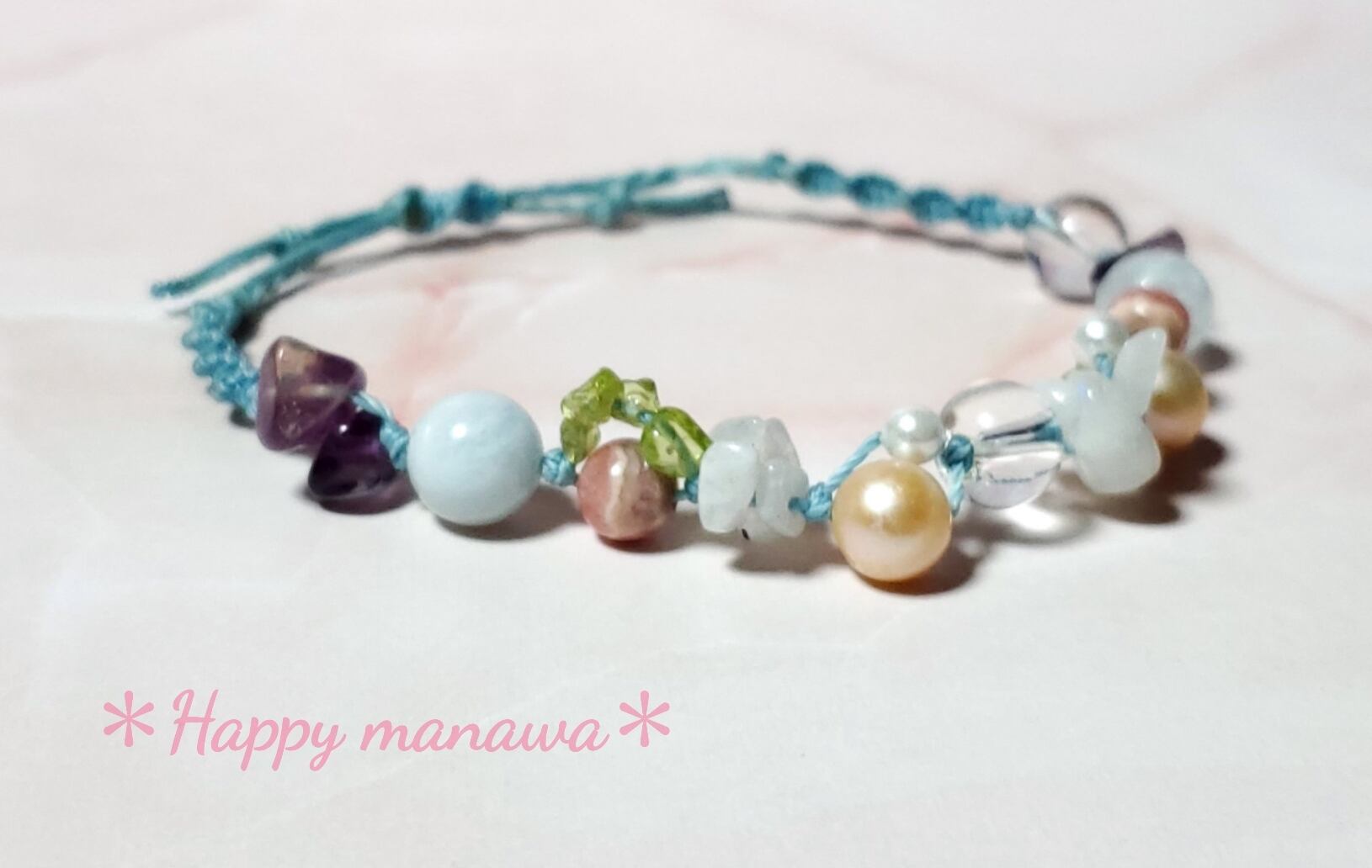 マクラメ編みブレスレット 恋愛運・幸運・癒やし お守りパワーストーンブレスレット
