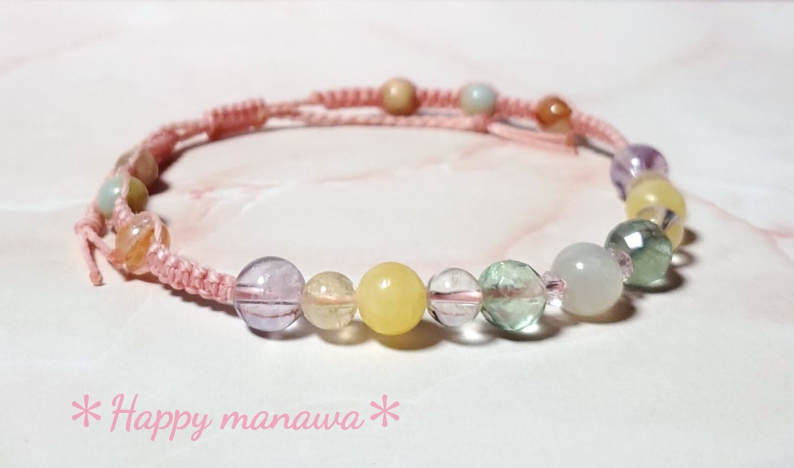 ✽ ブレスレットやアンクレットはマクラメコード(蝋引き紐)を編んで作っています。