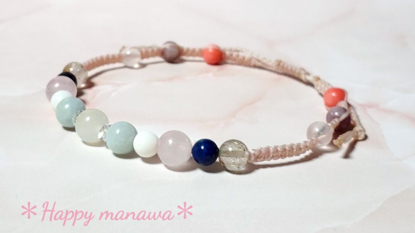 ✽ ブレスレットやアンクレットはマクラメコード(蝋引き紐)を編んで作っています。