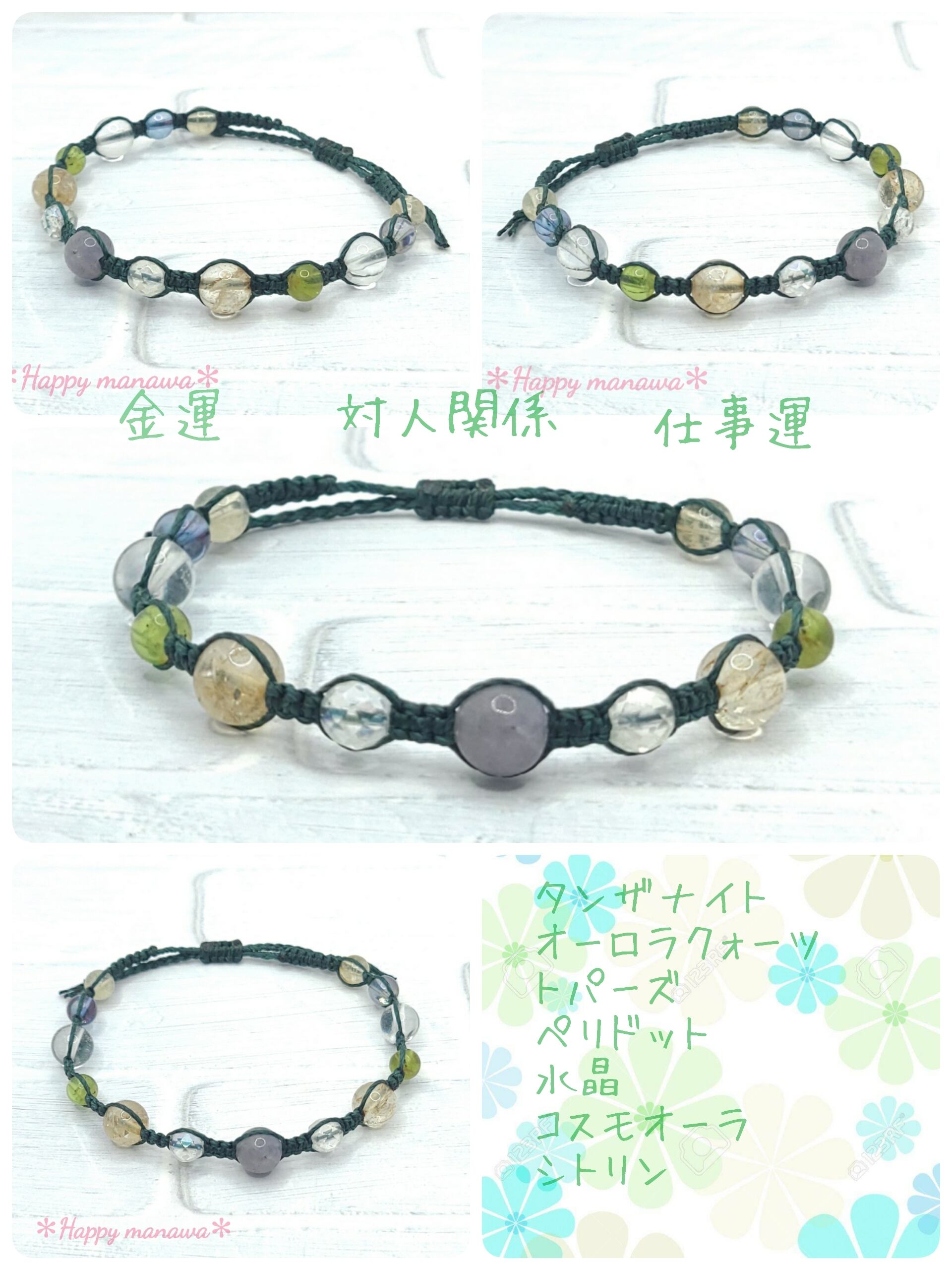 マクラメ編みブレスレット 金運・仕事運・人間関係 お守りパワーストーンブレスレット