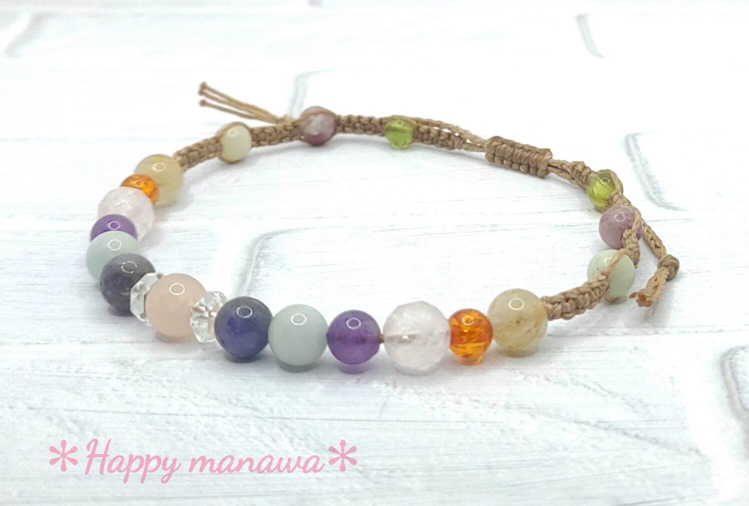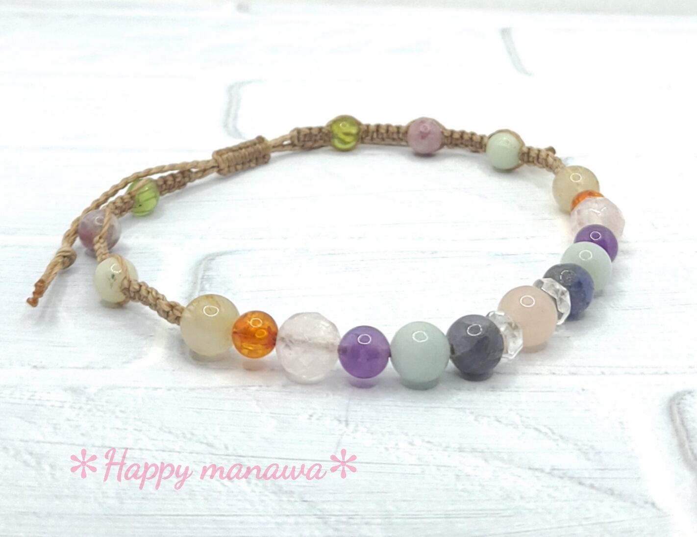 ✽ ブレスレットやアンクレットはマクラメコード(蝋引き紐)を編んで作っています。