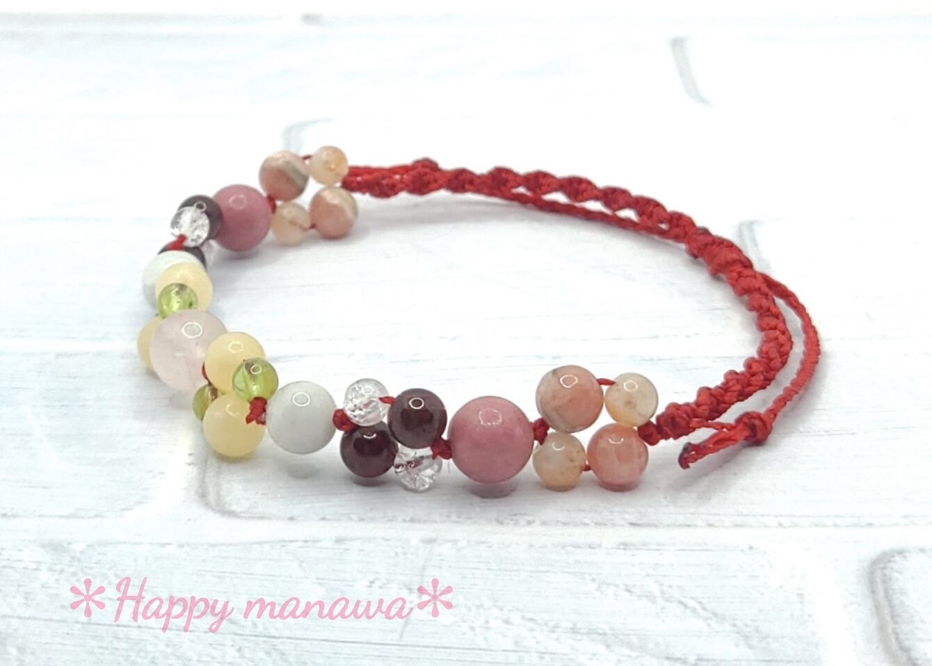 ✽ ブレスレットやアンクレットはマクラメコード(蝋引き紐)を編んで作っています。