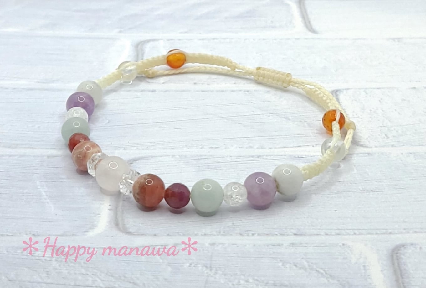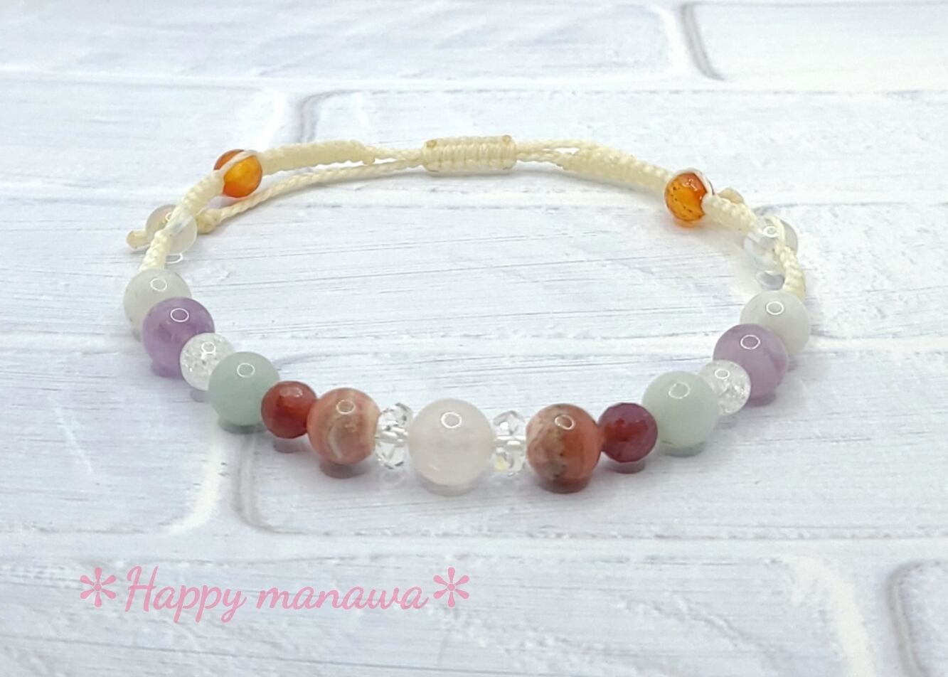 ✽ ブレスレットやアンクレットはマクラメコード(蝋引き紐)を編んで作っています。