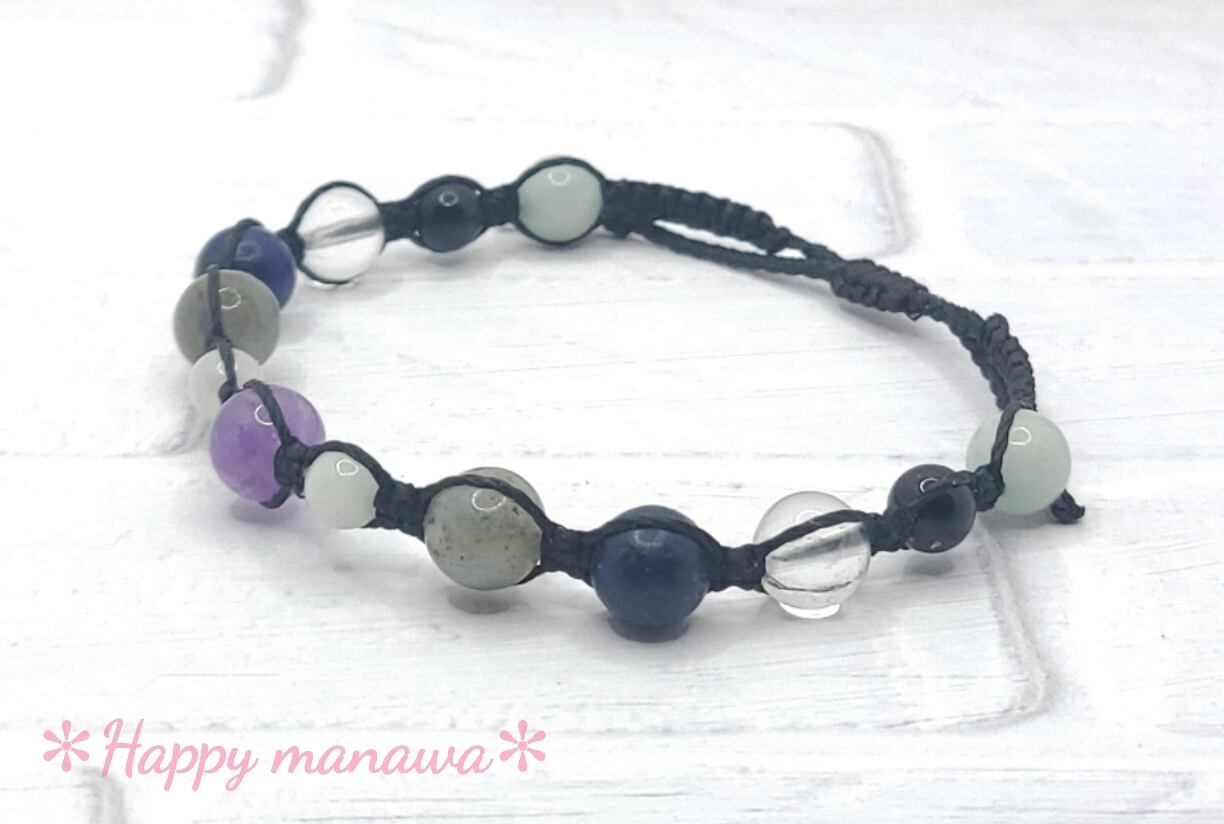 ✽ ブレスレットやアンクレットはマクラメコード(蝋引き紐)を編んで作っています。