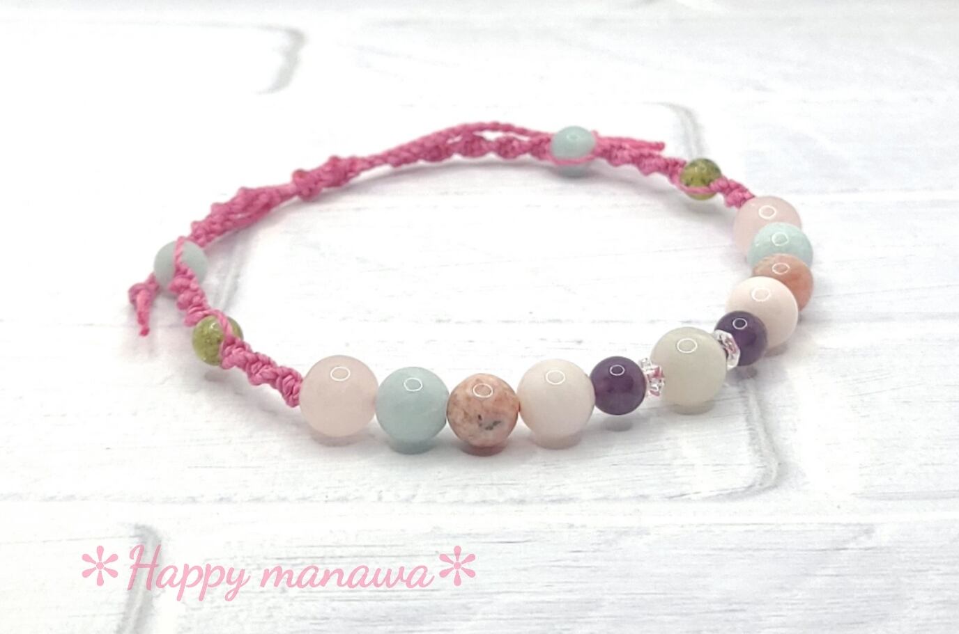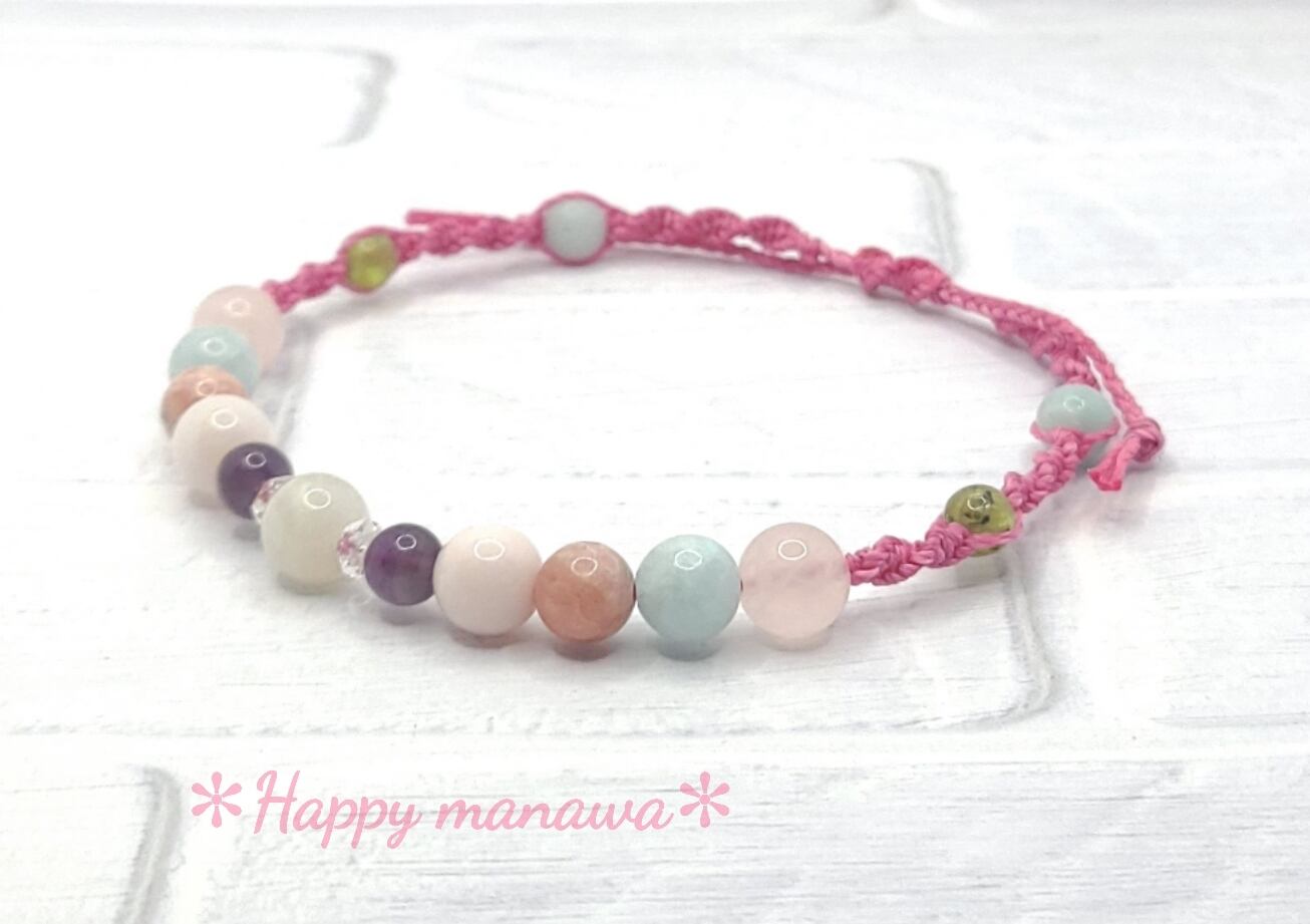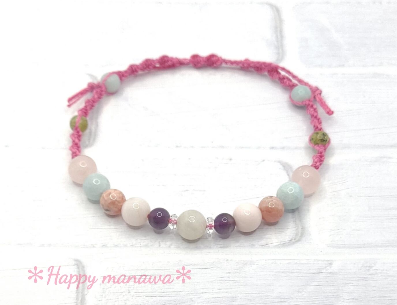 ✽ ブレスレットやアンクレットはマクラメコード(蝋引き紐)を編んで作っています。