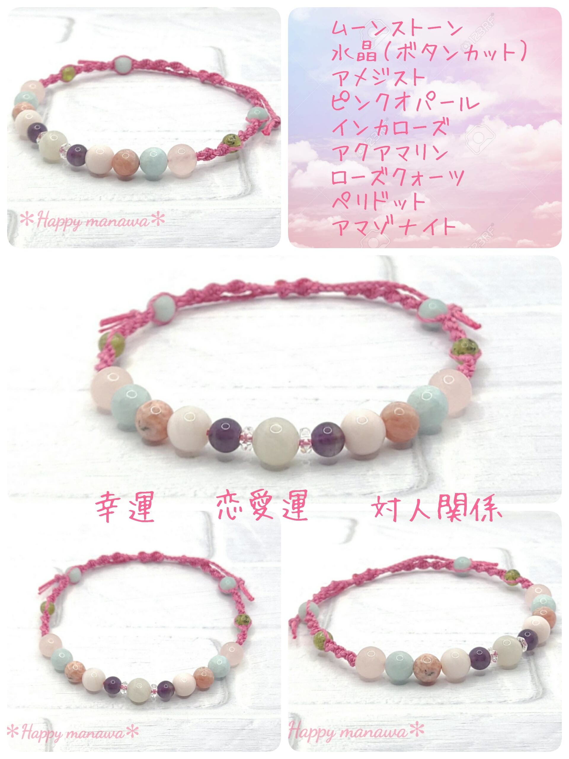 レディース❊マクラメ編みお守りアンクレット❊恋愛運&人間関係&幸運