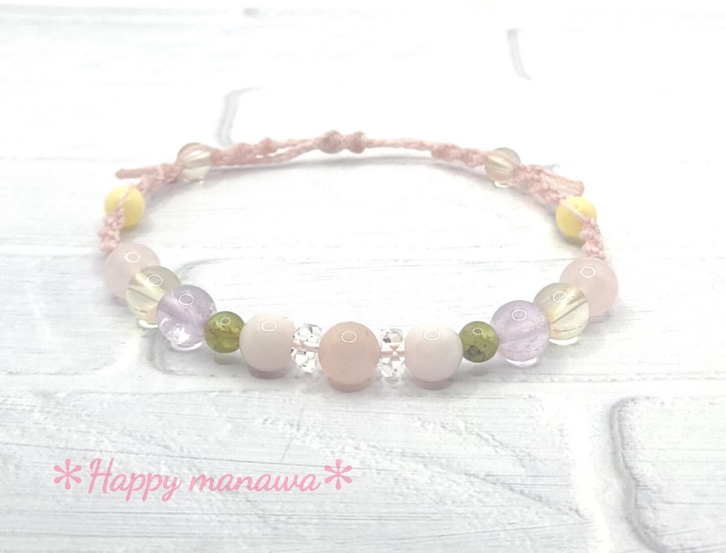 ✽ ブレスレットやアンクレットはマクラメコード(蝋引き紐)を編んで作っています。