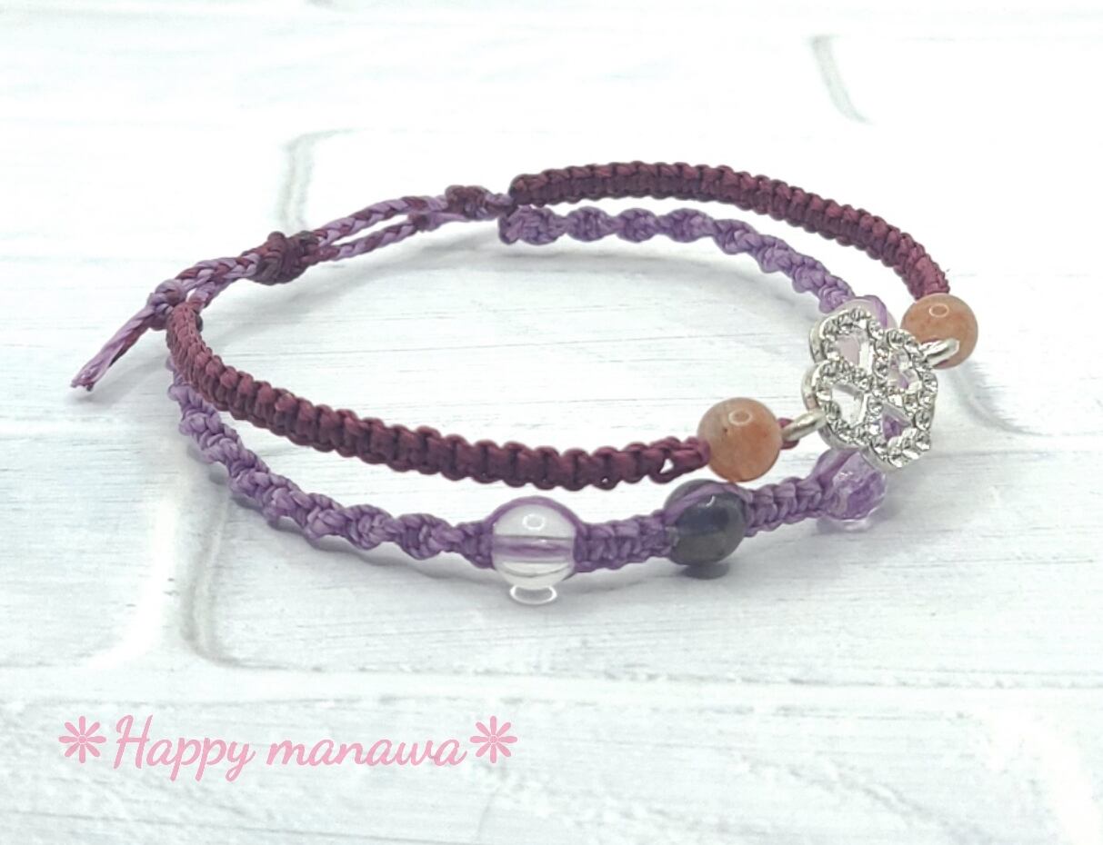 レディース❊マクラメ編みお守り2連ブレスレット❊恋愛運&目標達成&癒やし
