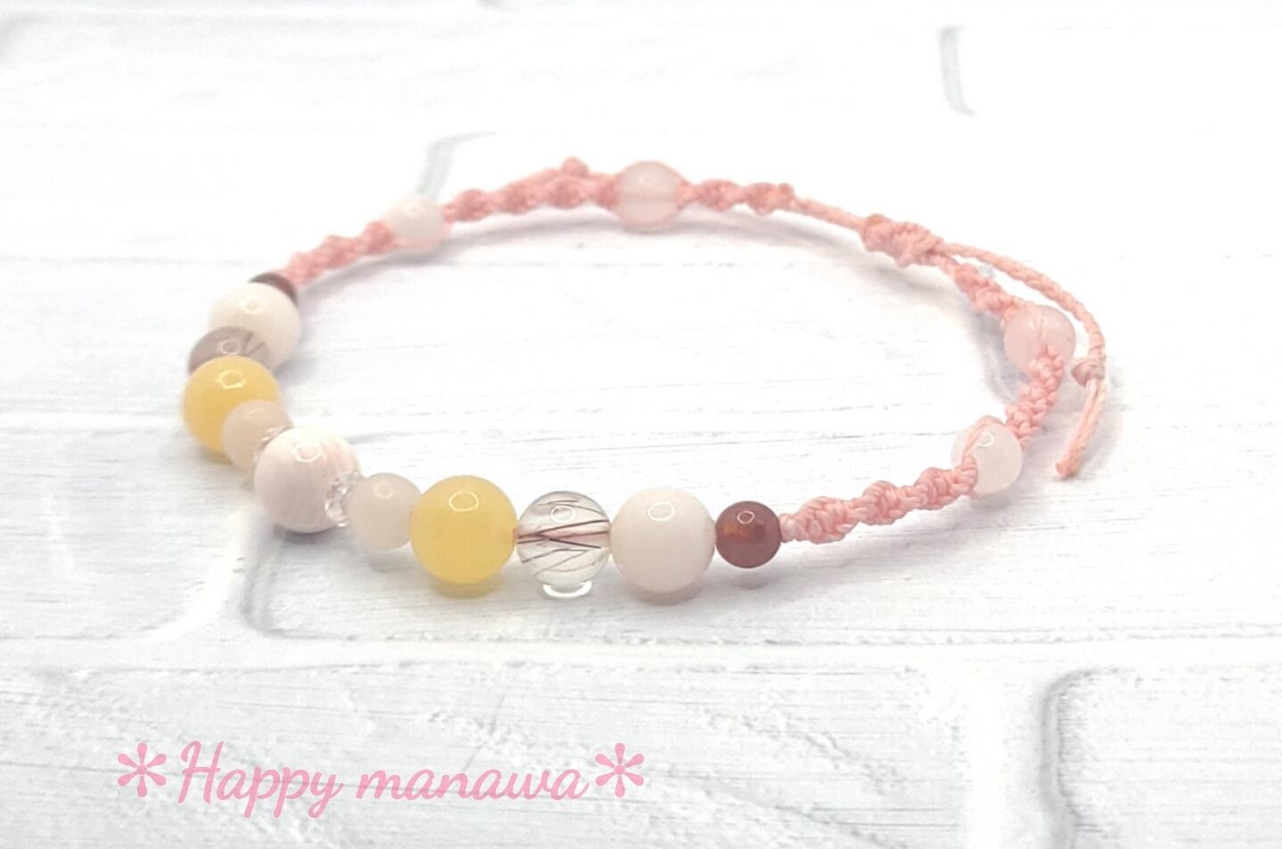 ✽ ブレスレットやアンクレットはマクラメコード(蝋引き紐)を編んで作っています。