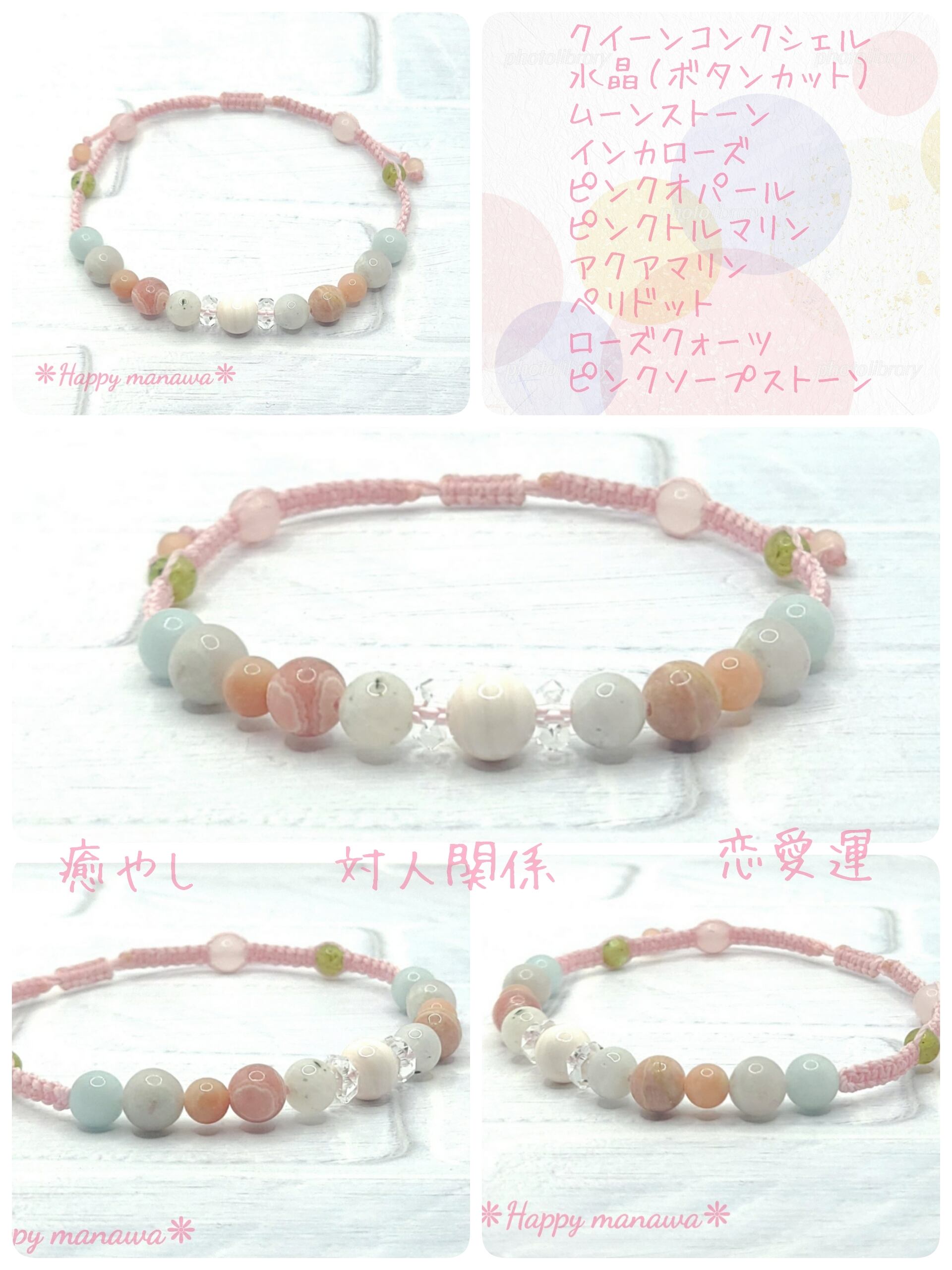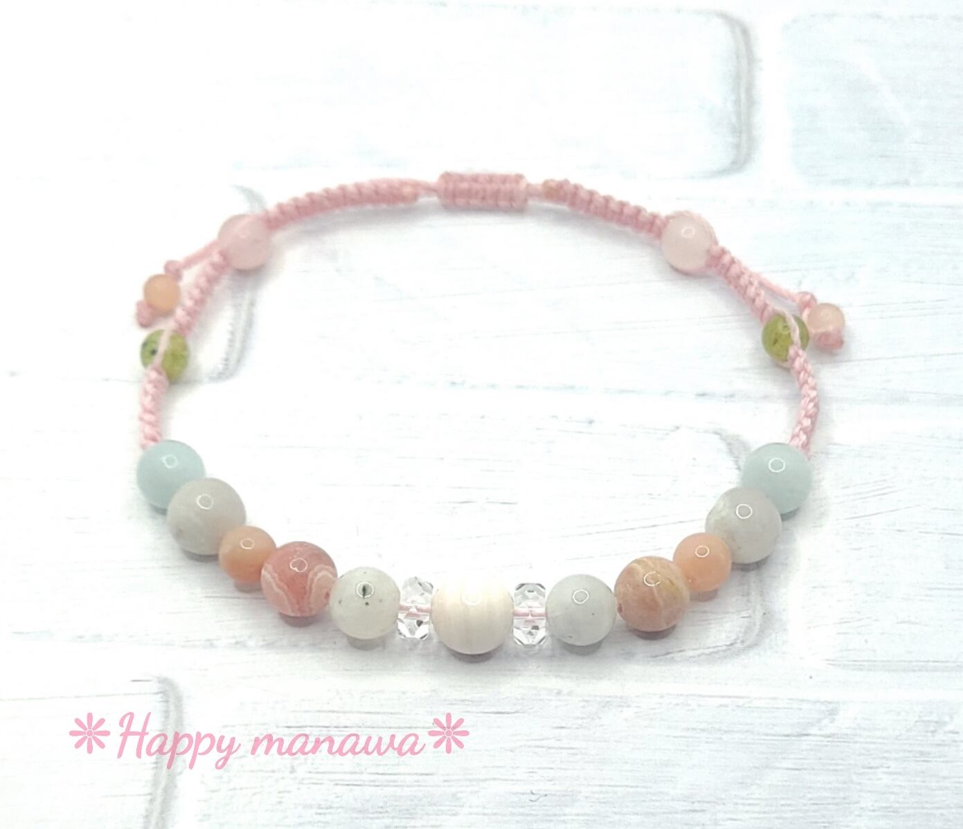 ✽ ブレスレットやアンクレットはマクラメコード(蝋引き紐)を編んで作っています。