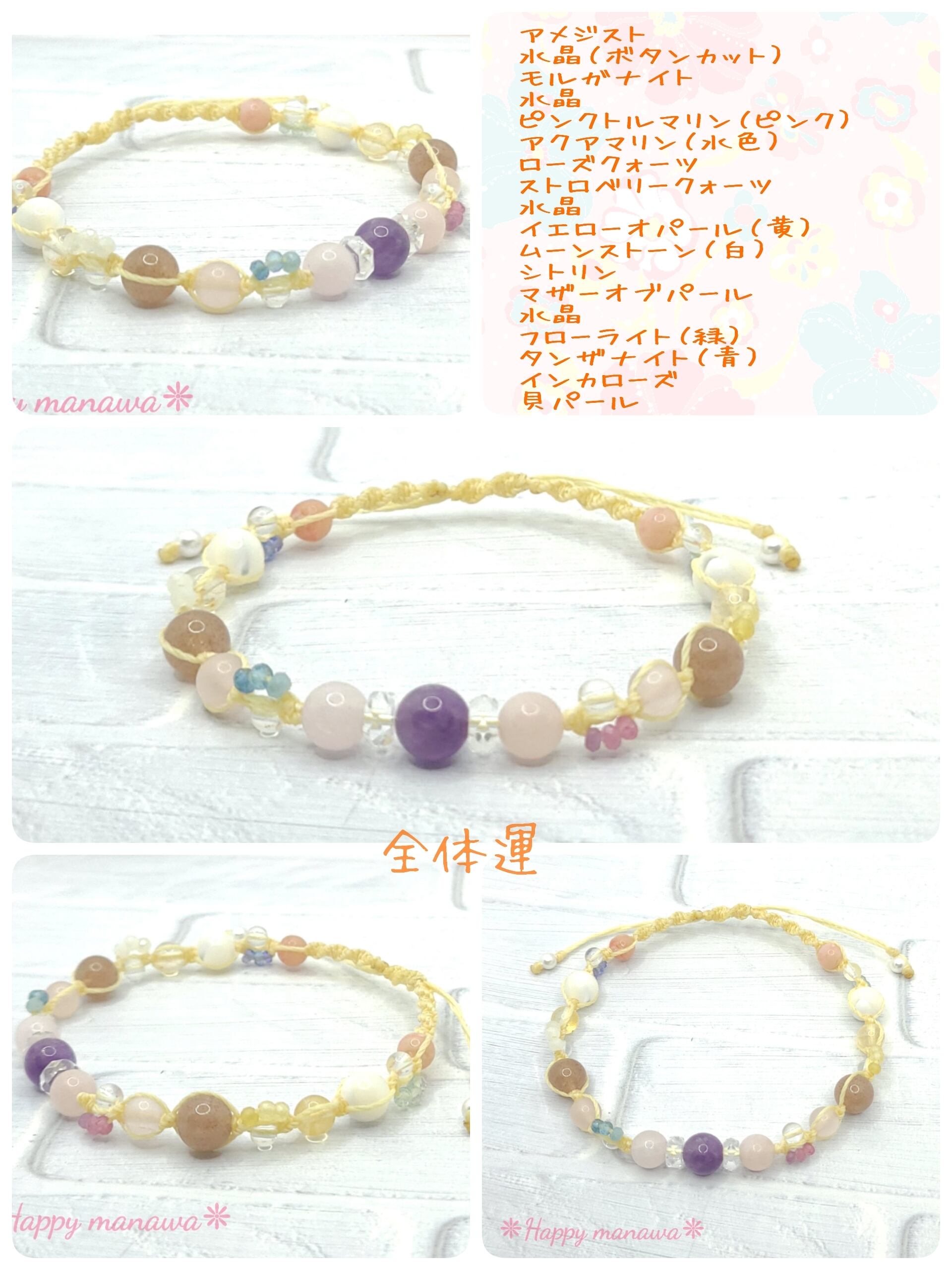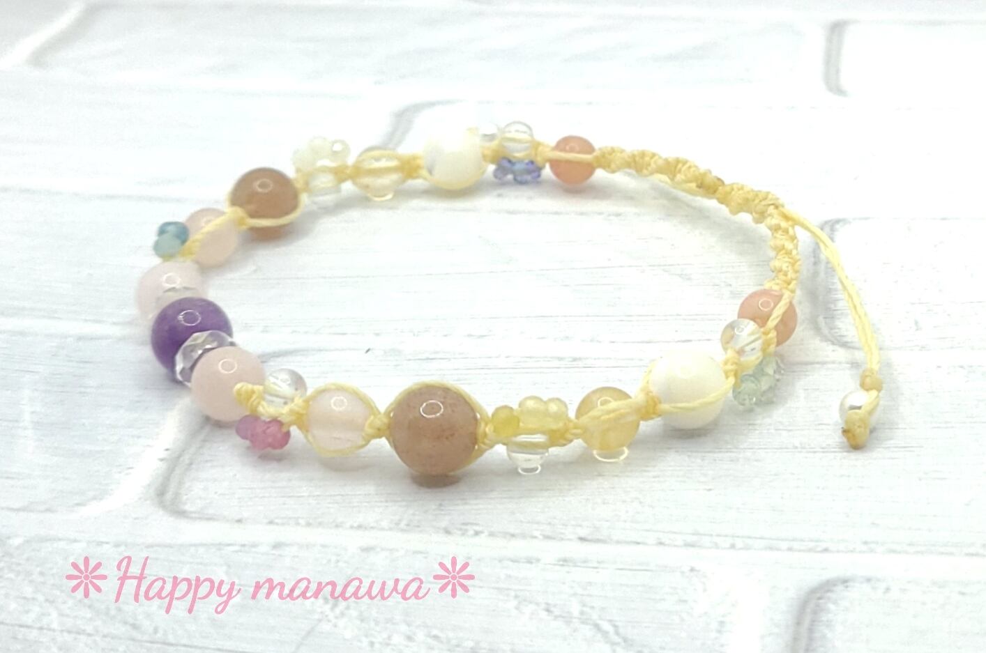 ✽ ブレスレットやアンクレットはマクラメコード(蝋引き紐)を編んで作っています。