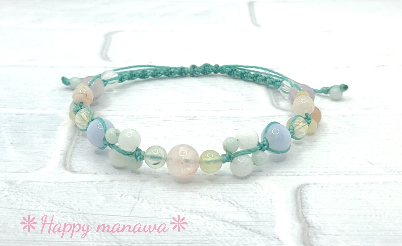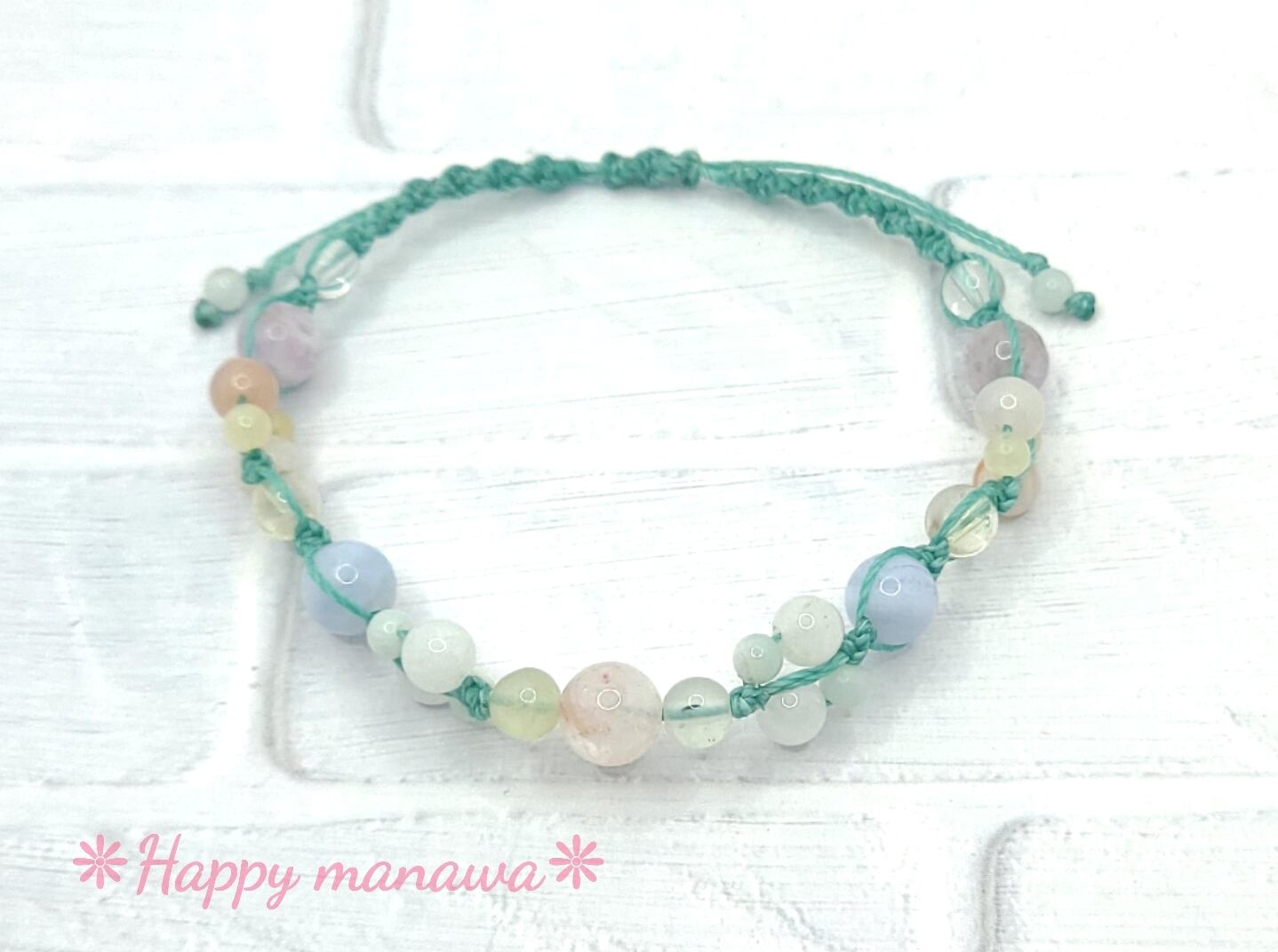 ✽ ブレスレットやアンクレットはマクラメコード(蝋引き紐)を編んで作っています。