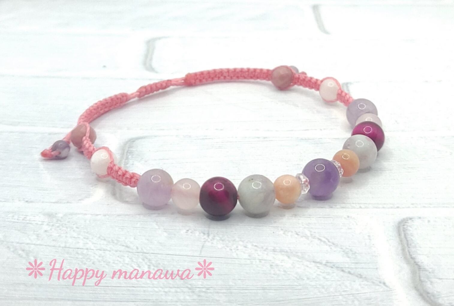 ✽ ブレスレットやアンクレットはマクラメコード(蝋引き紐)を編んで作っています。