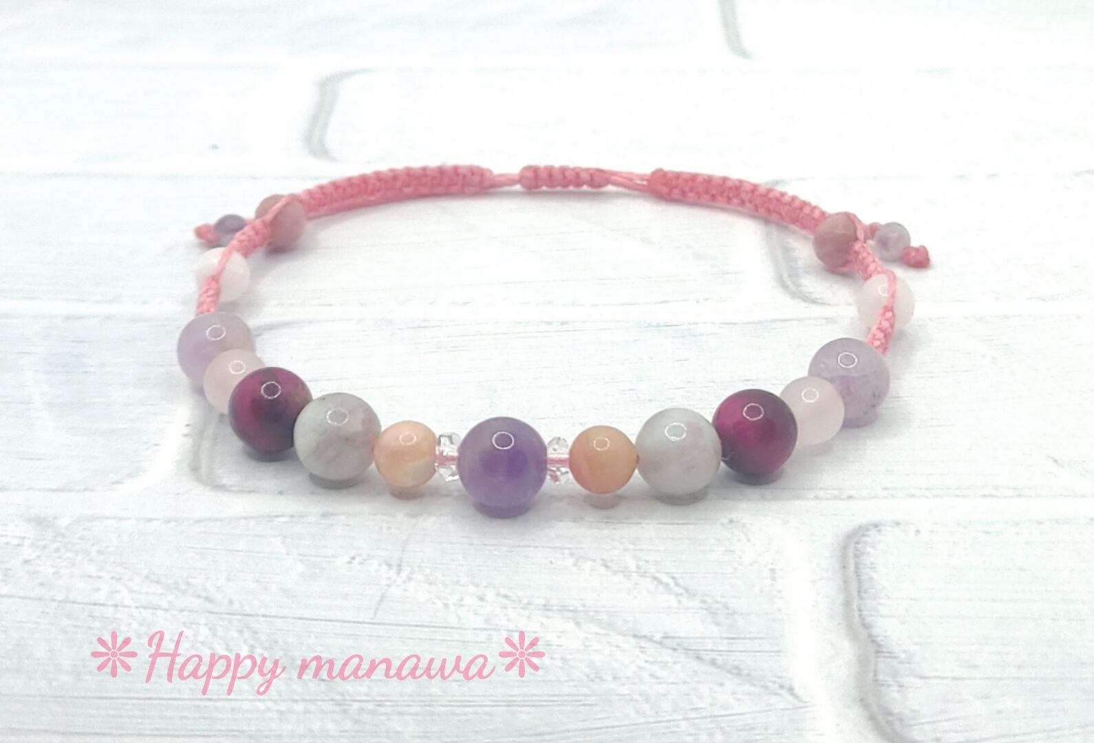 レディース❊マクラメ編みお守りアンクレット❊恋愛運&幸運&癒やし