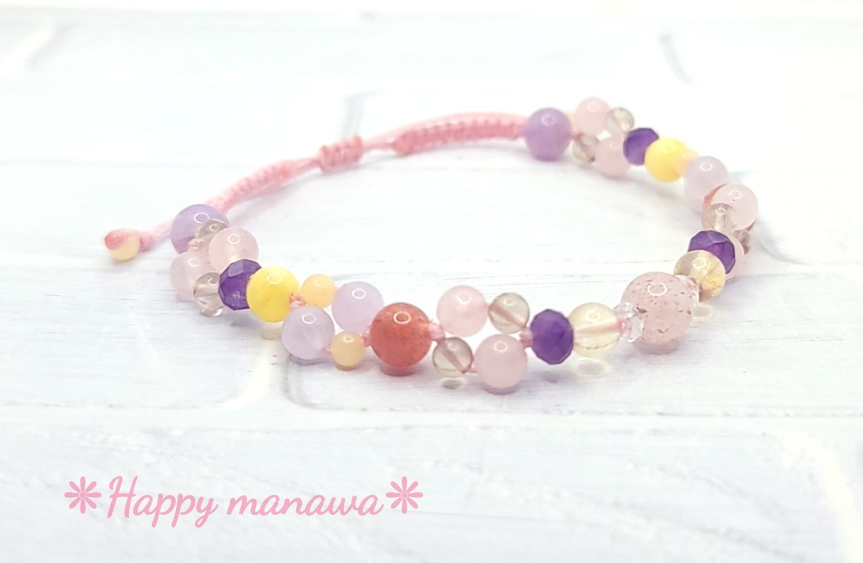✽ ブレスレットやアンクレットはマクラメコード(蝋引き紐)を編んで作っています。