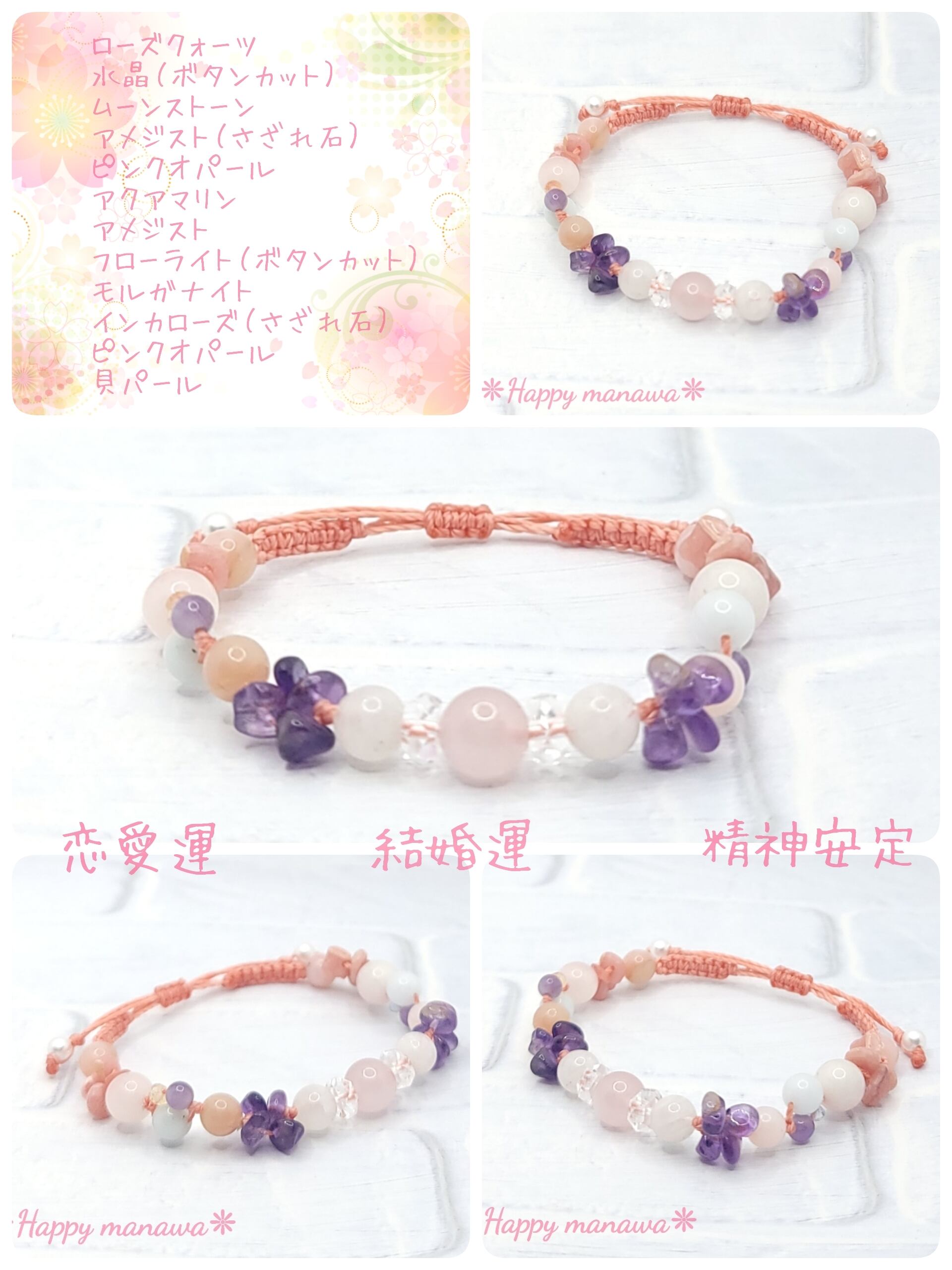 レディース❊マクラメ編みお守りブレスレット❊恋愛運&結婚運&精神安定