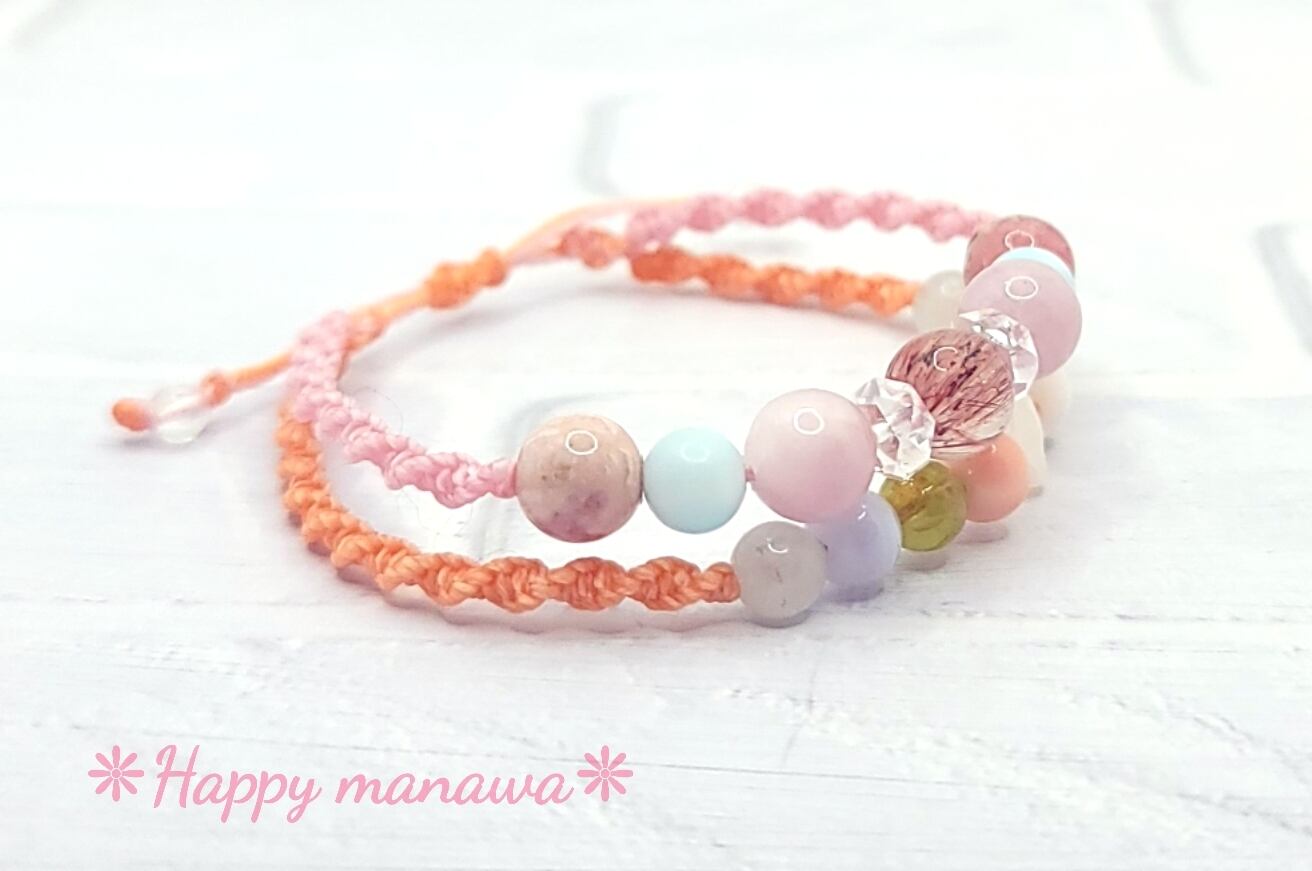 レディース❊マクラメ編みお守り2連ブレスレット❊子宝&安産&癒やし