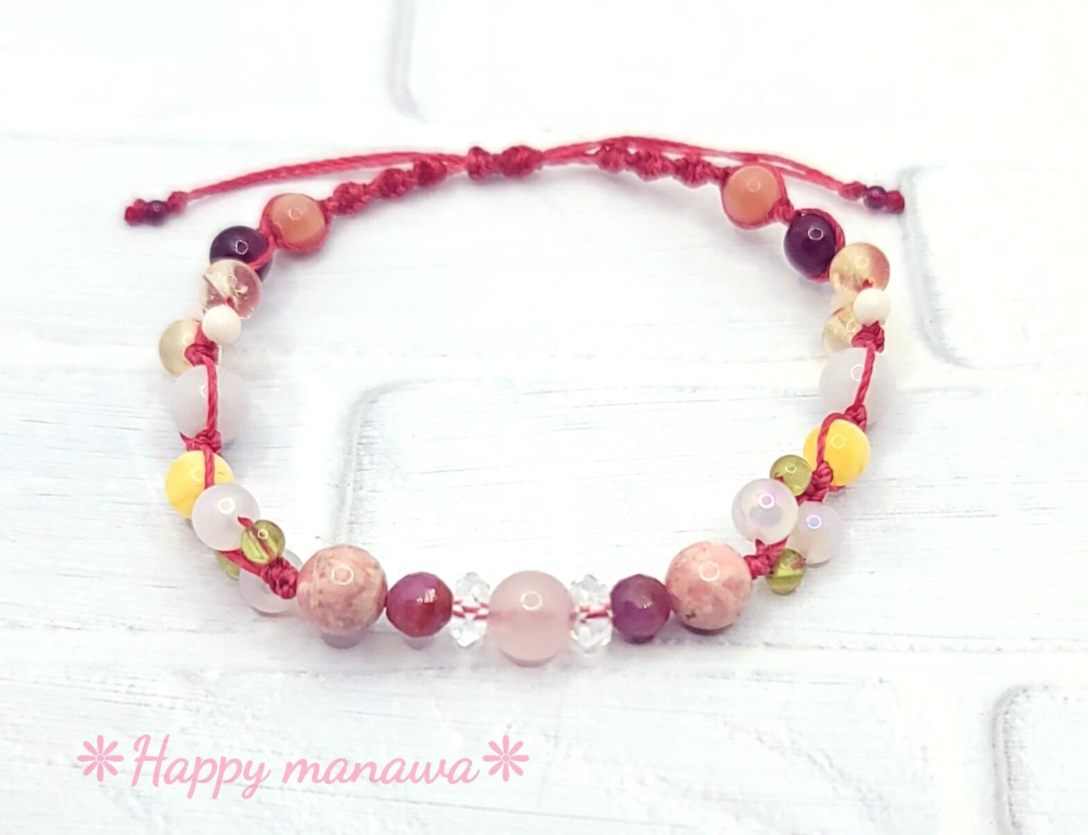 ✽ ブレスレットやアンクレットはマクラメコード(蝋引き紐)を編んで作っています。
