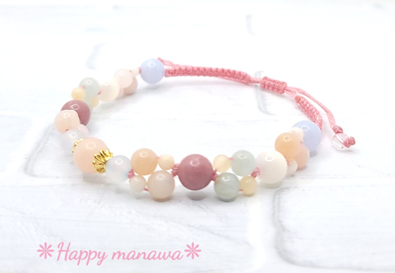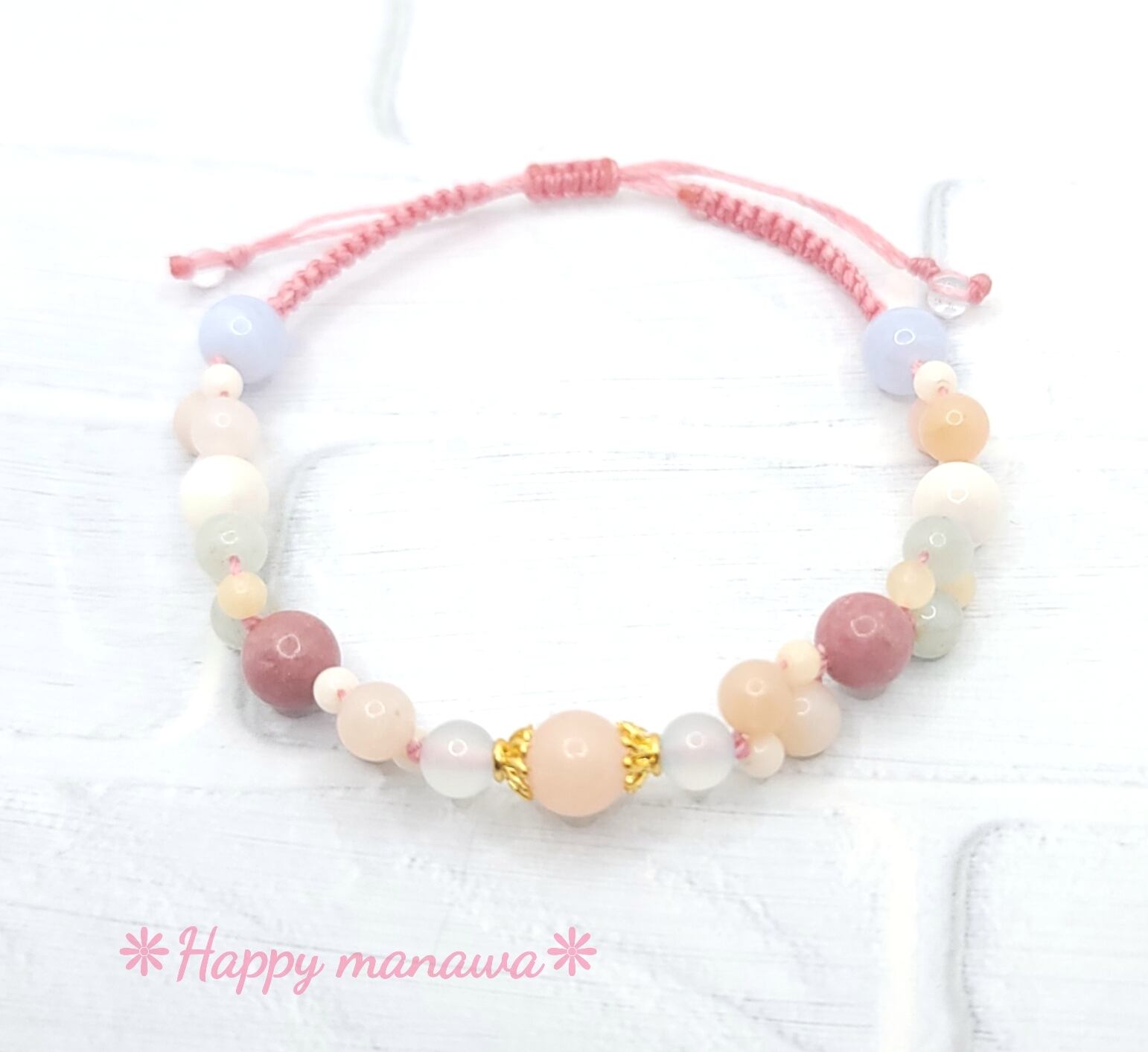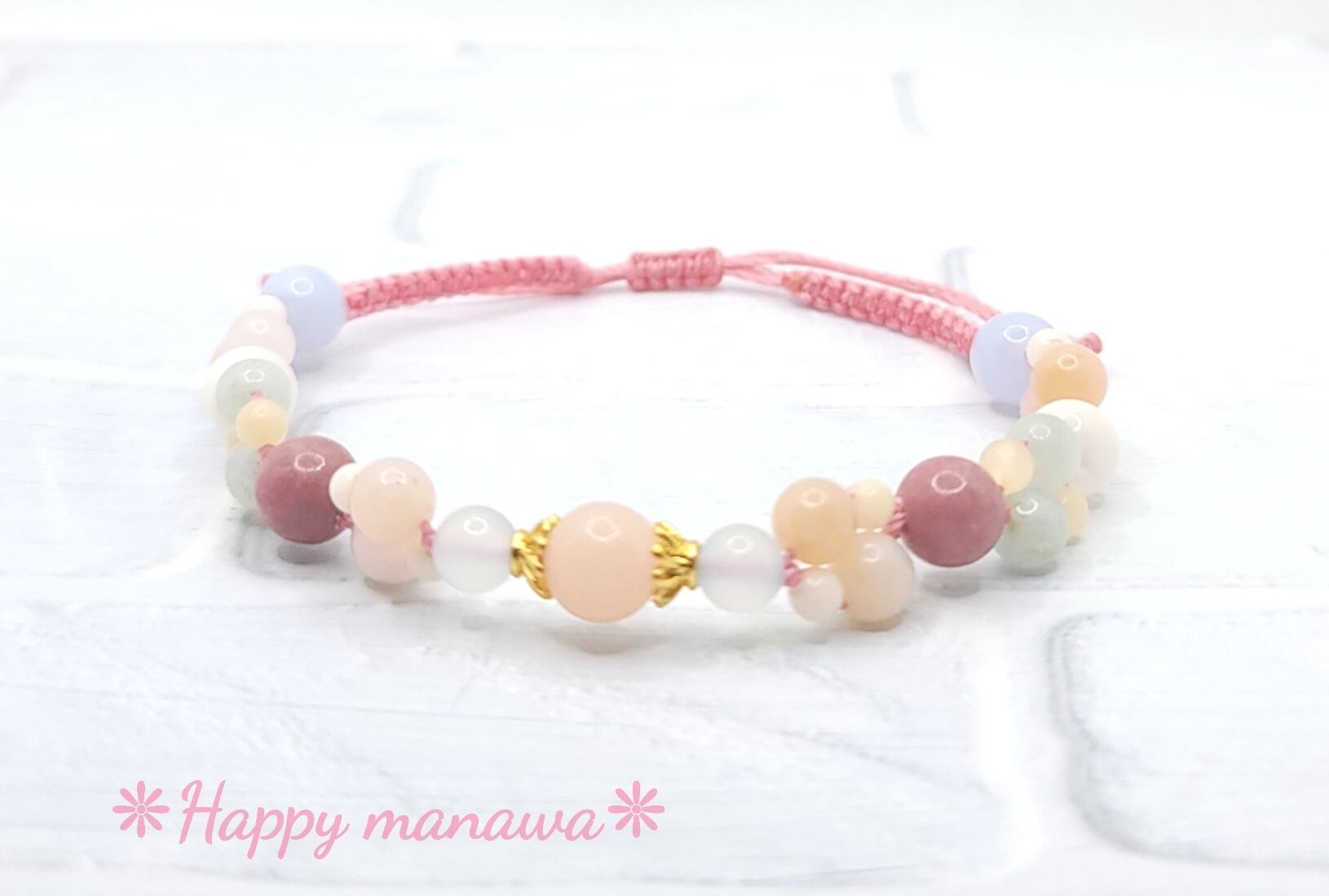 ✽ ブレスレットやアンクレットはマクラメコード(蝋引き紐)を編んで作っています。