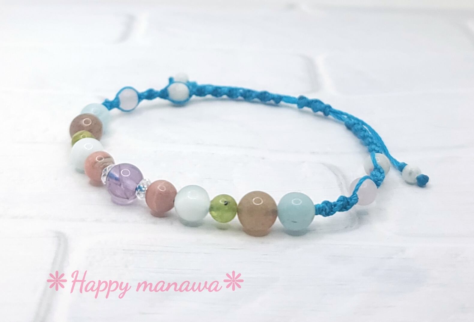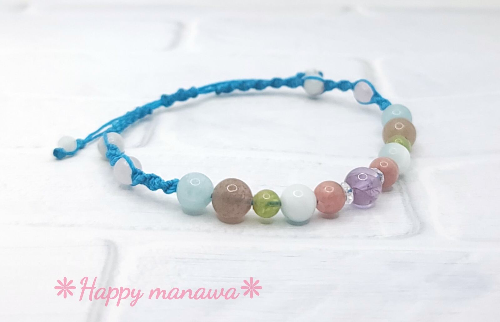 ✽ ブレスレットやアンクレットはマクラメコード(蝋引き紐)を編んで作っています。
