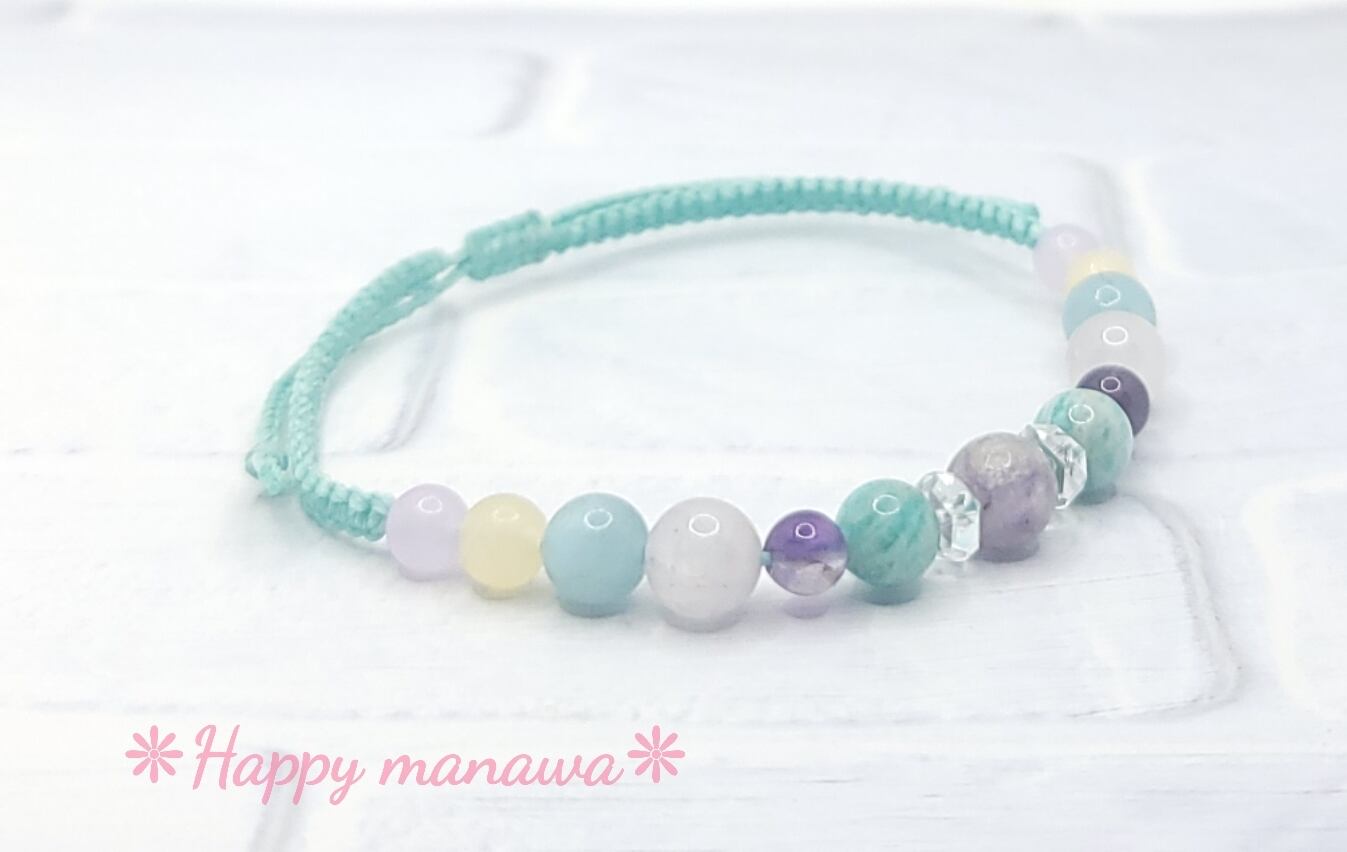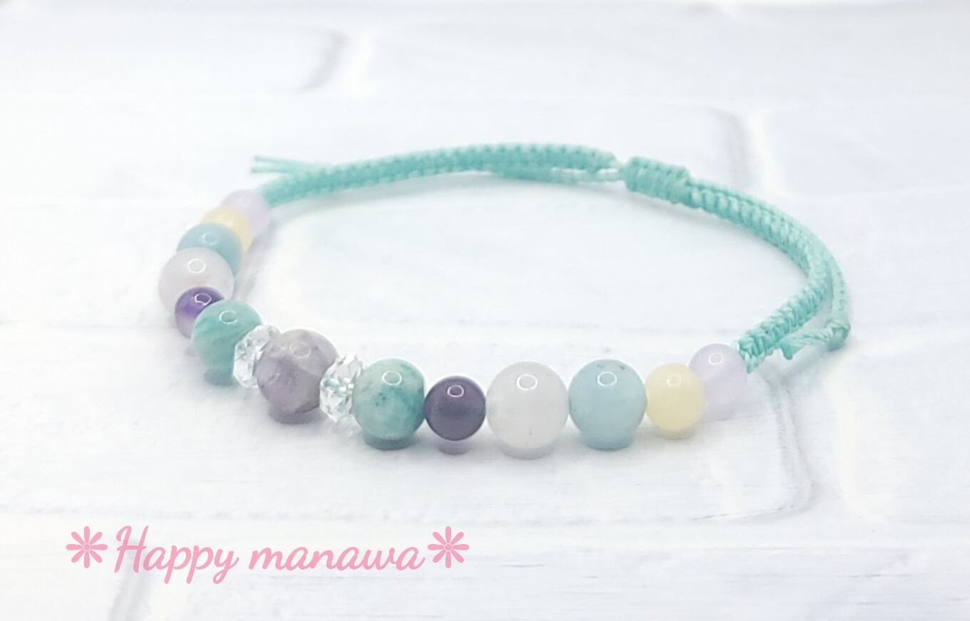 ✽ ブレスレットやアンクレットはマクラメコード(蝋引き紐)を編んで作っています。