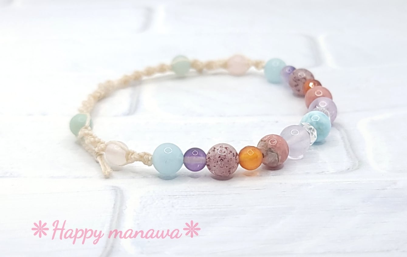 ✽ ブレスレットやアンクレットはマクラメコード(蝋引き紐)を編んで作っています。
