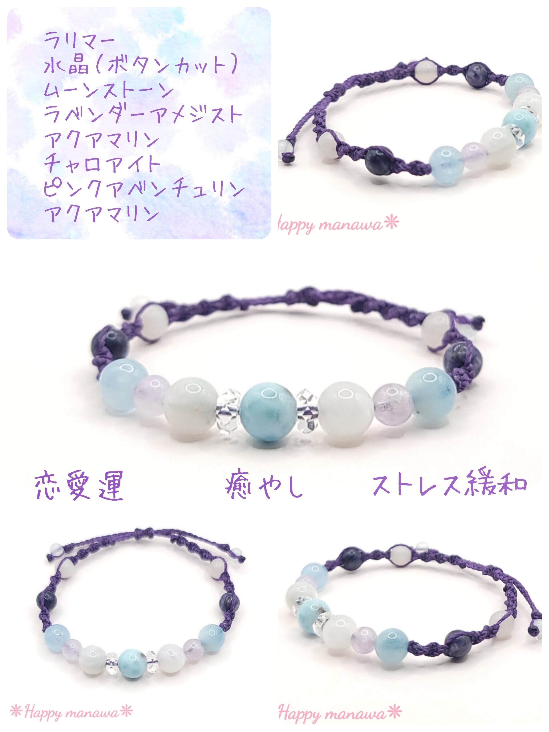 ❊癒やし&ストレス緩和&恋愛運❊マクラメ編みお守りブレスレット