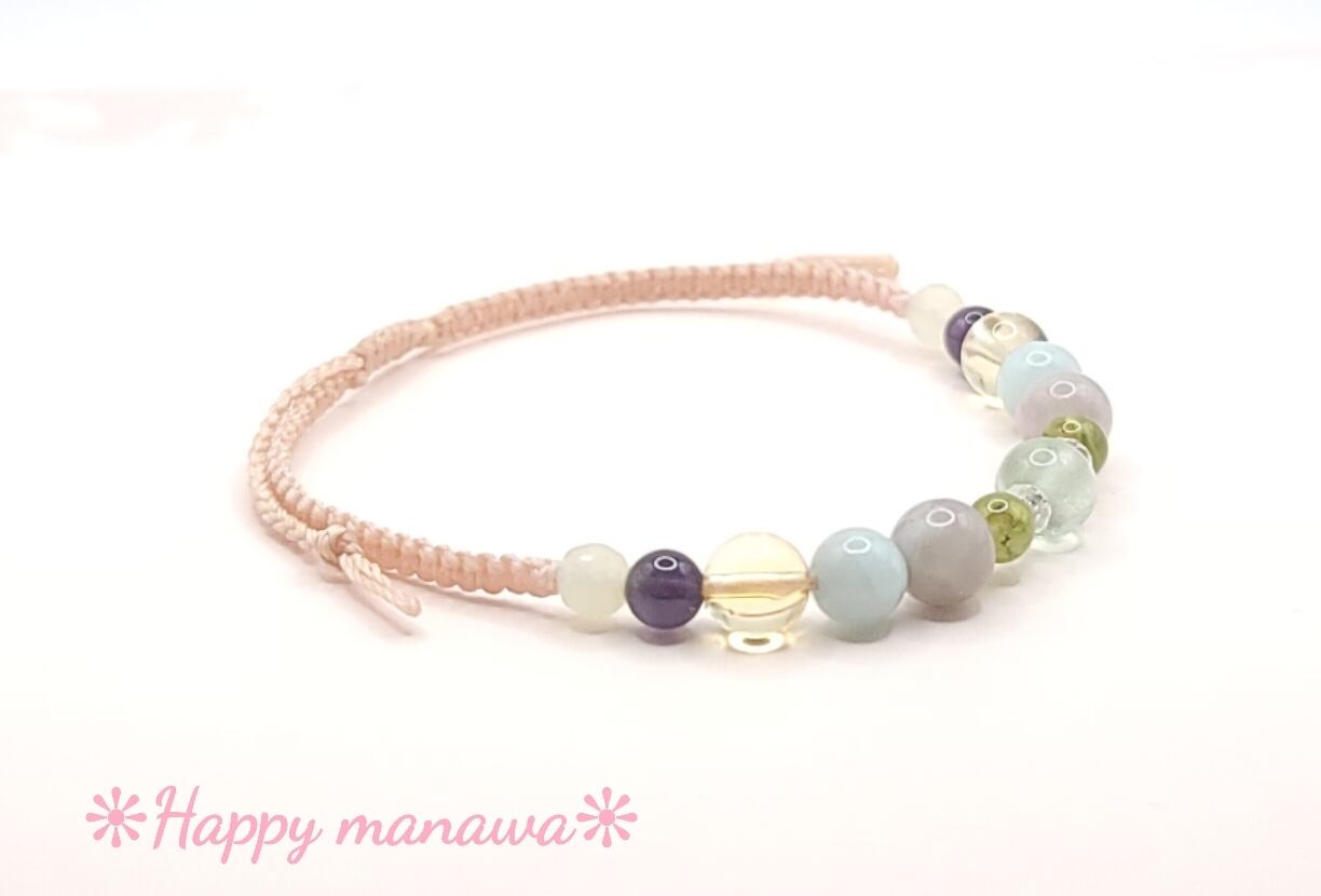 ✽ ブレスレットやアンクレットはマクラメコード(蝋引き紐)を編んで作っています。