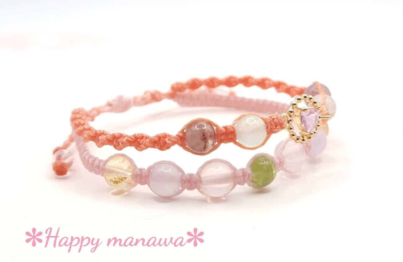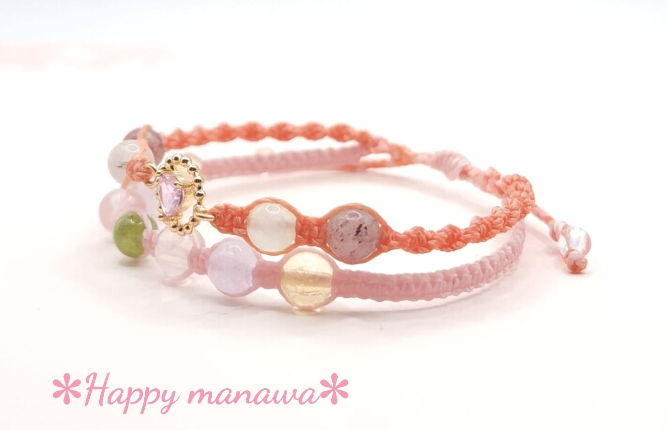 ✽対人関係&恋愛運&ストレス緩和✽マクラメ編みお守り2連ブレスレット