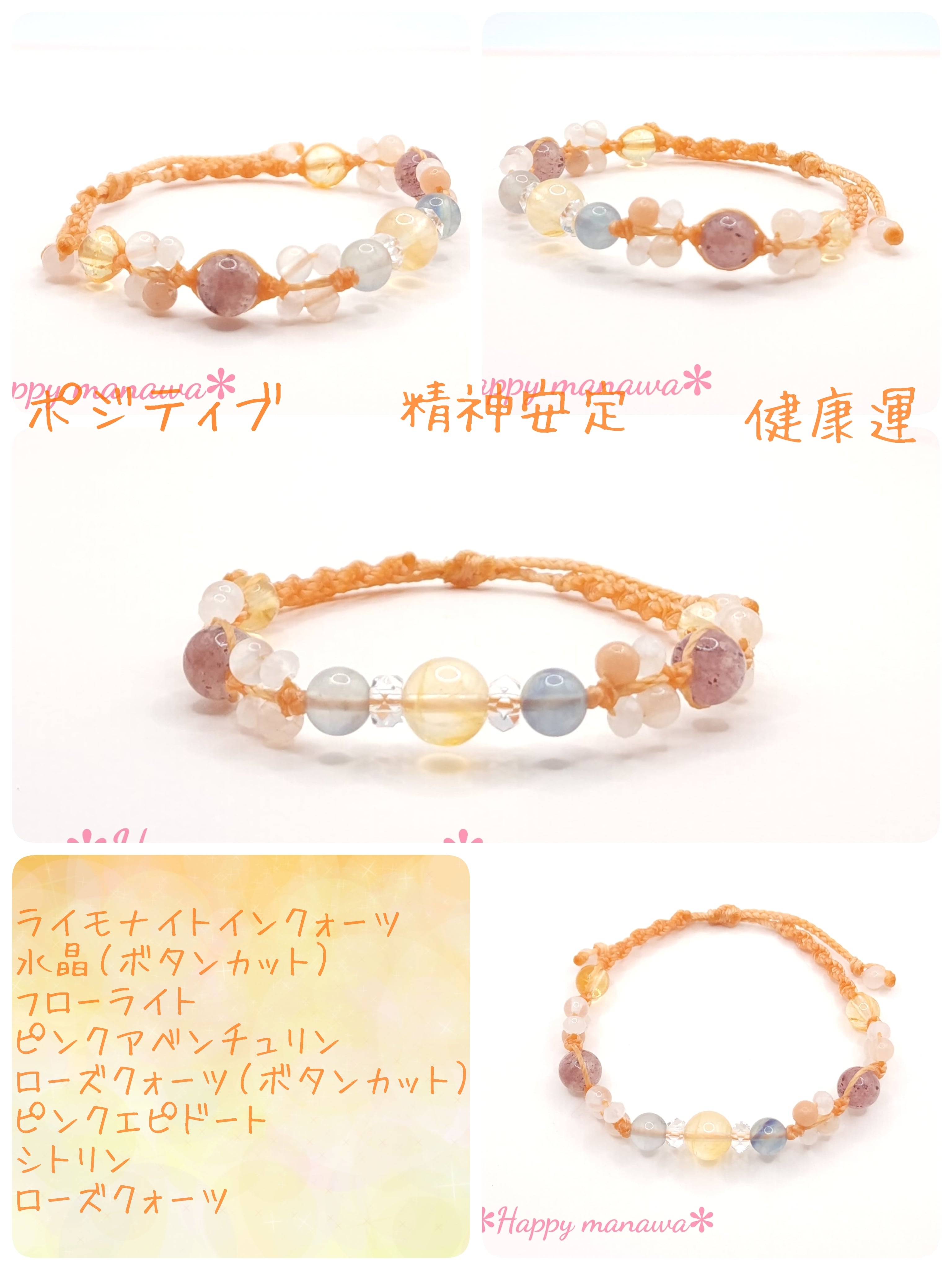 ✽ポジティブ&精神安定&健康運✽マクラメ編みお守りブレスレット