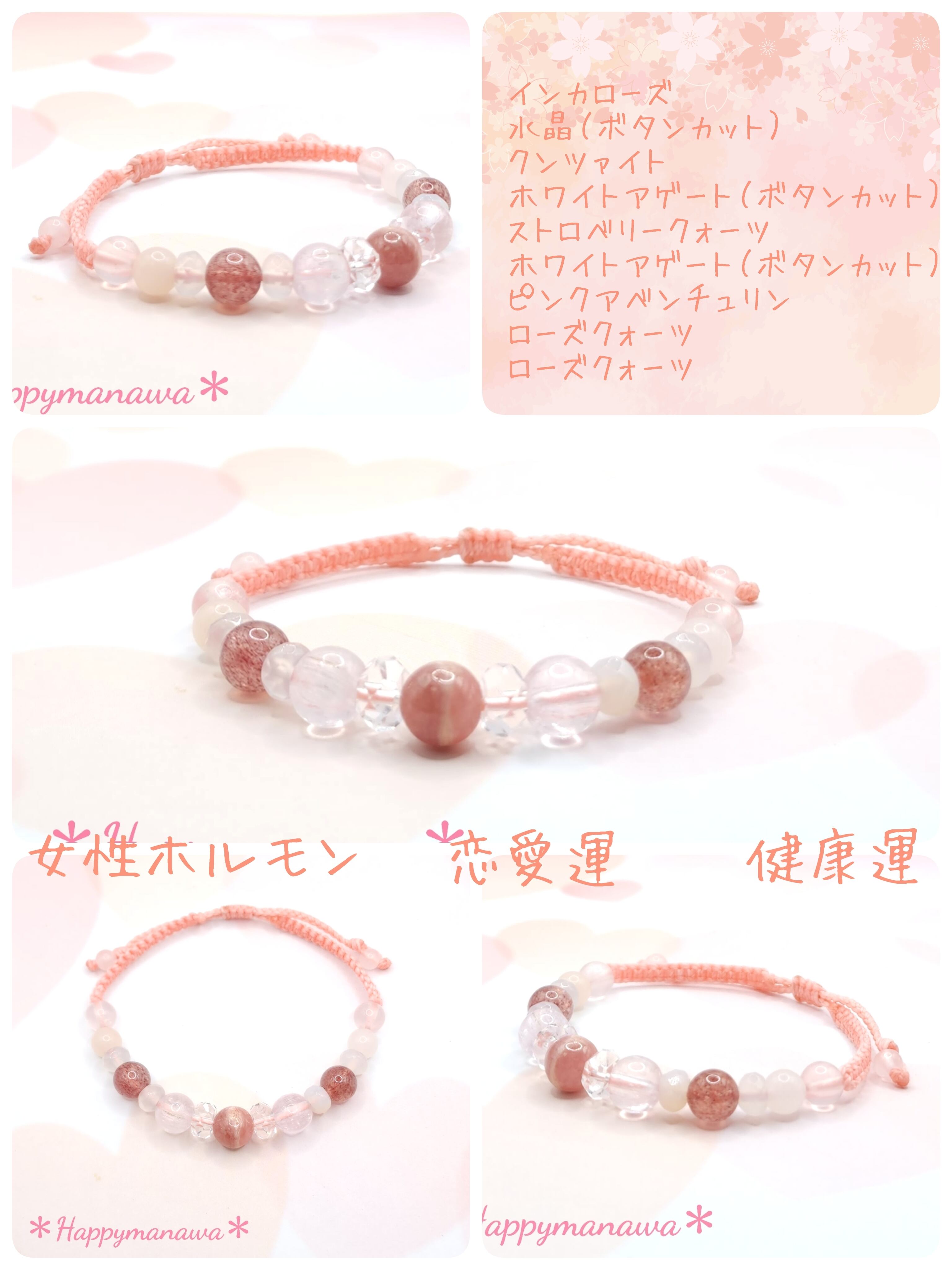✽恋愛運&女性ホルモン&癒やし✽マクラメ編みお守りブレスレット