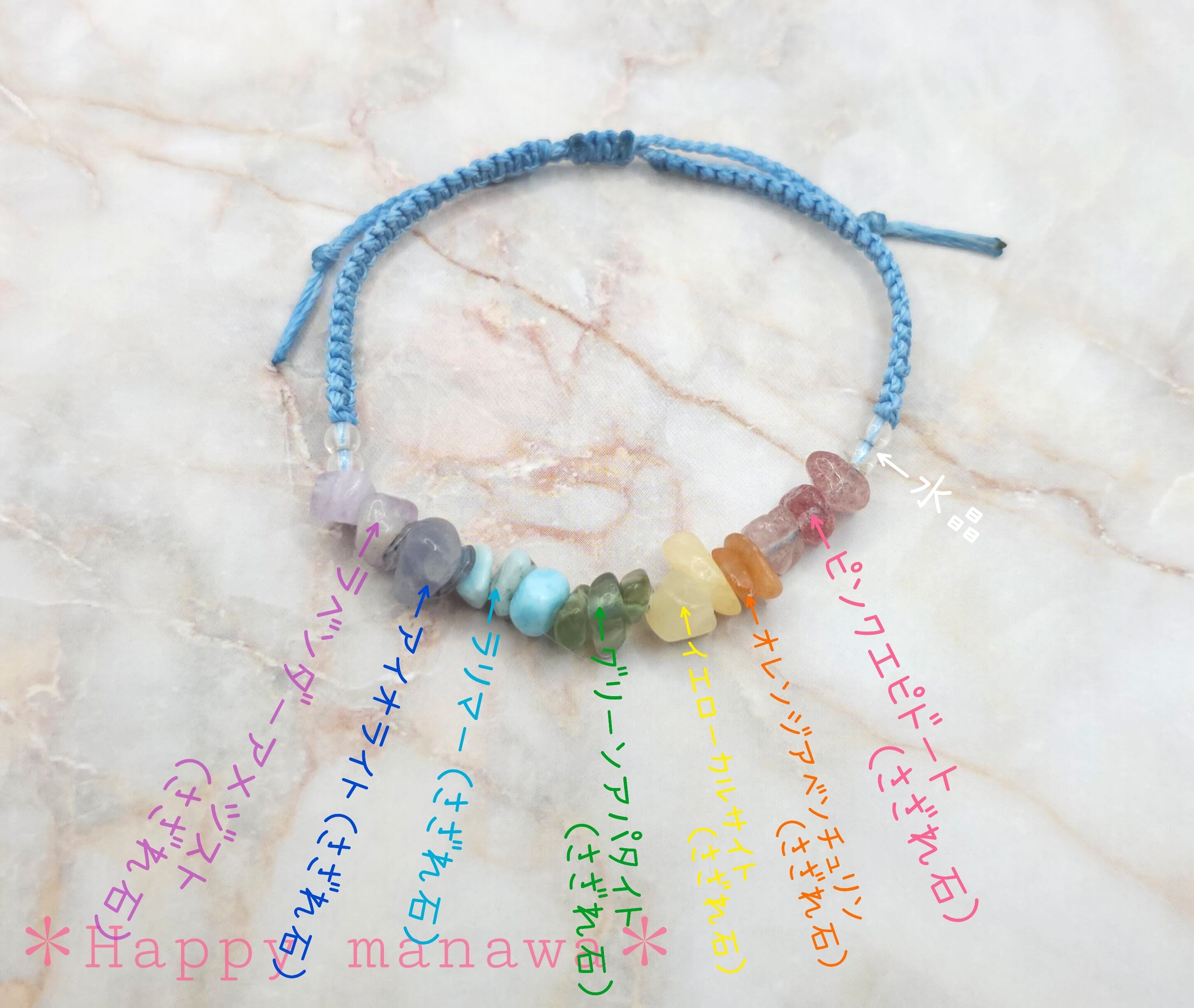 ✽ ブレスレットやアンクレットはマクラメコード(蝋引き紐)を編んで作っています。