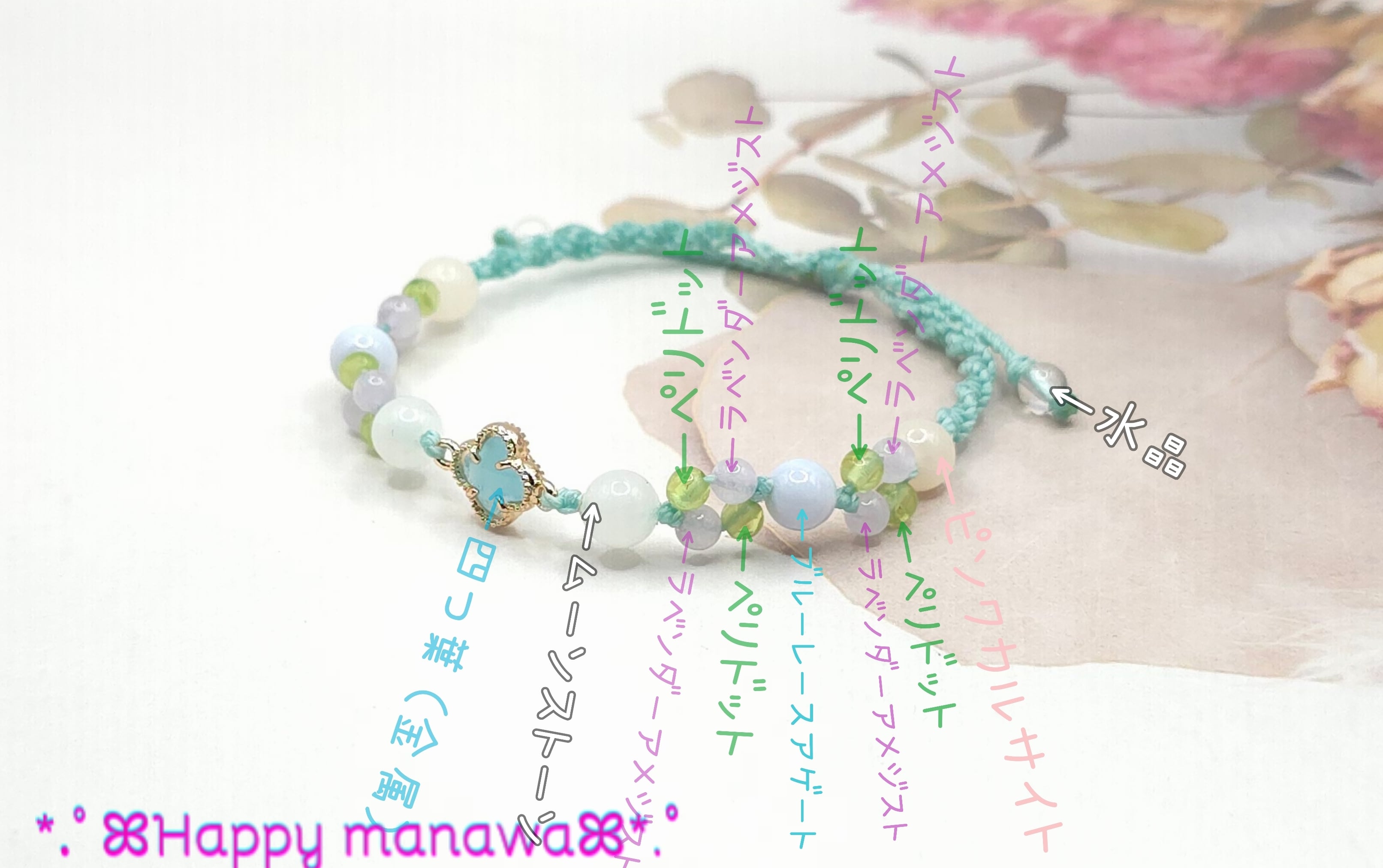 ✽ストレス緩和&癒やし&ポジティブ✽マクラメ編みお守りブレスレット